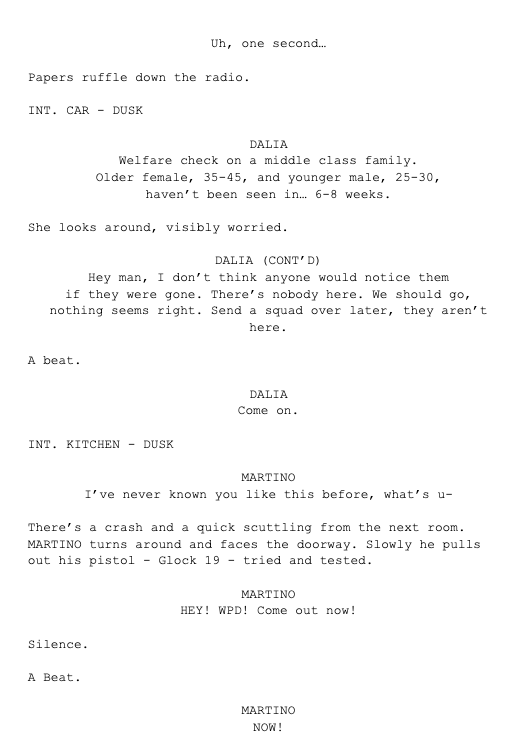 Welfare Check.When two detectives enter an abandoned home, they think it is just another day out of the office, until things become suspiciously familiar.